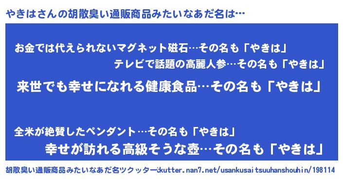 | ヒーロー風カッコイイあだ名 | 『ネオヤキハ』『愛の使者やきは』 |