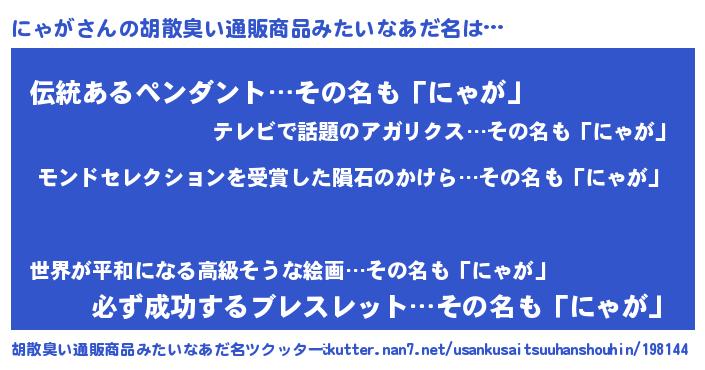 | 欧米人風あだ名 | 『ダニエルにゃが』『ウサインにゃが』 |