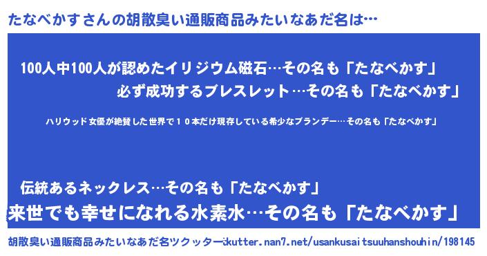 | 意味不明あだ名 | 『住所不定無職たなべかす(86歳)』 |