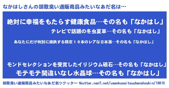 | 恥ずかしいあだ名 | 『なかちん』『プリティーなかはし』 |