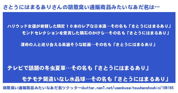 | ヘコむあだ名 | 『酢こんぶ』『さともー』『さとっ子』 |