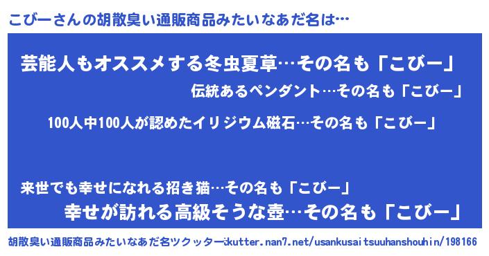 | ヒーロー風カッコイイあだ名 | 『正義の使者こびー』『最強戦士コビー』 |