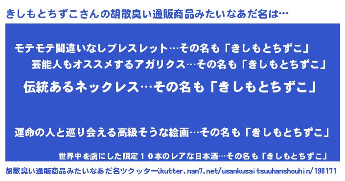 | 意味不明あだ名 | 『とにかく怪しいきしもとちずこ』 |