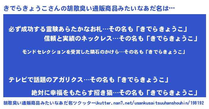 | ヘコむあだ名 | 『きでもー』『きでらきょうこ(遠い目)』 |
