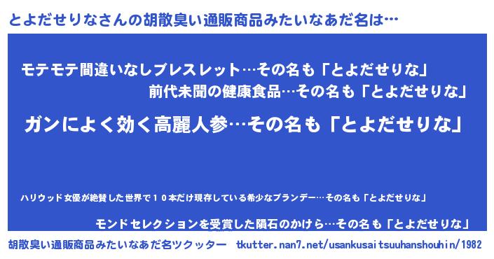 | 意味不明あだ名 | 『自称とよだせりな』 |