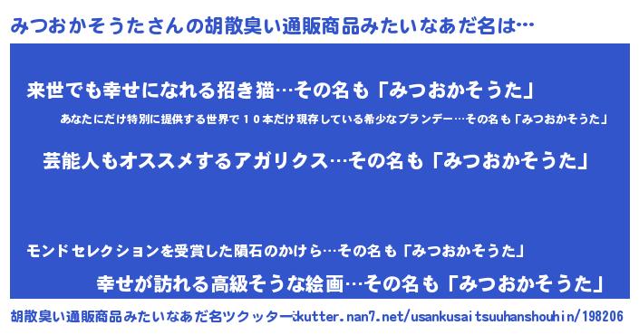 | 意味不明あだ名 | 『自称みつおかそうた』 |