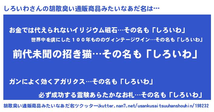| ヘコむあだ名 | 『しろいわ(笑)』『しろにゅー』 |
