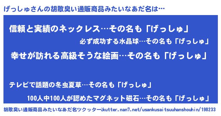 | 意味不明あだ名 | 『げっしゅフォーエバー』 |