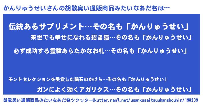 | ヒーロー風カッコイイあだ名 | 『スーパーカンリュウセイ』 |