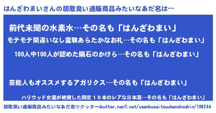 | ヘコむあだ名 | 『はんざわまい(震え声)』『はんもー』 |