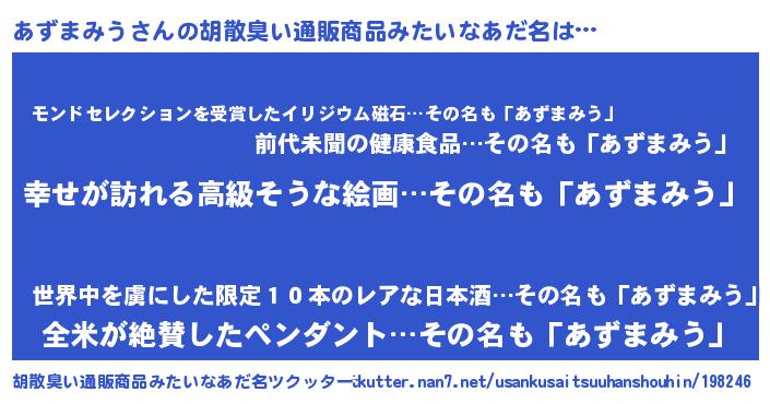 | 女子向けラノベタイトル風あだ名 | 『あずまみうの雑貨屋さん』 |