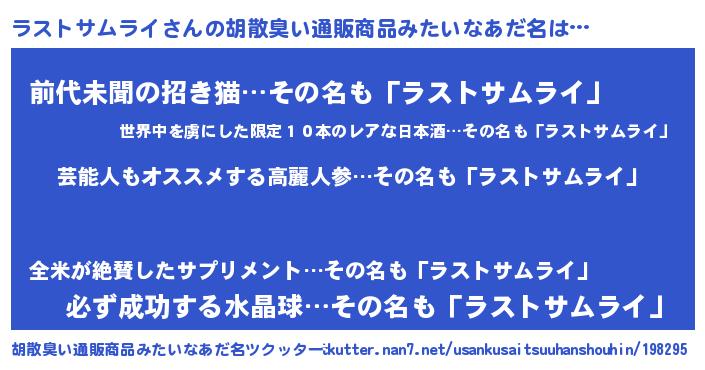 | 意味不明あだ名 | 『自称ラストサムライ』 |
