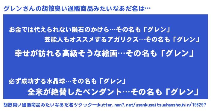 | 女子向けラノベタイトル風あだ名 | 『グレンの雑貨屋さん』『グレン恋絵巻』 |