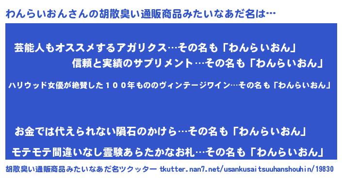 | 欧米人風あだ名 | 『アンジェラ・わんらいおん』 |