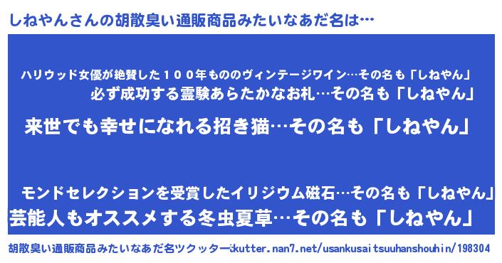 | ヘコむあだ名 | 『しねやん(小並感)』『しねふぇ~』 |