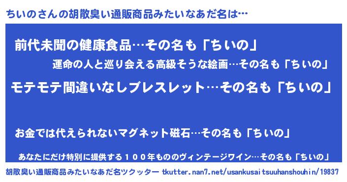 | 意味不明あだ名 | 『ペロリンちいの』『永久保存ちいの』 |