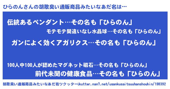 | ヘコむあだ名 | 『ひら太郎』『ひらのん(笑)』『豆乳』 |