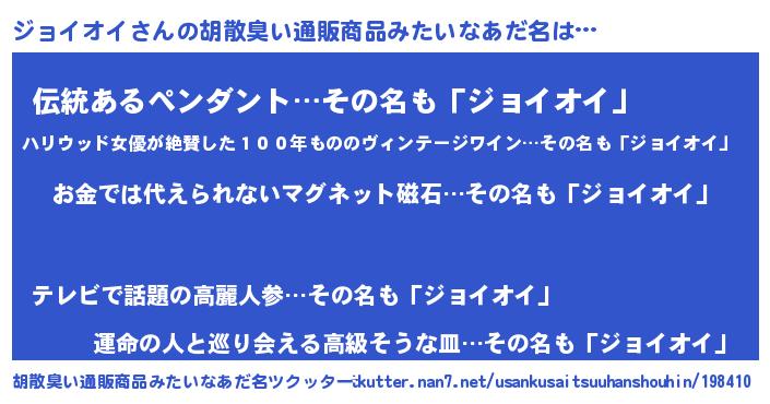 | ヒーロー風カッコイイあだ名 | 『愛の使者ジョイオイ』『幻影騎士ジョ』 |