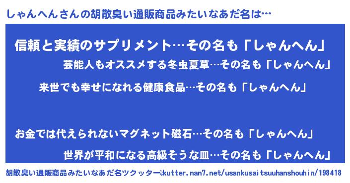 しゃんへんさんの胡散臭い通販商品みたいなあだ名をツクッター!