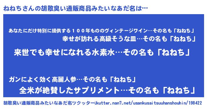 | 欧米人風あだ名 | 『ダルビッシュねねち』『ウサインねねち』 |