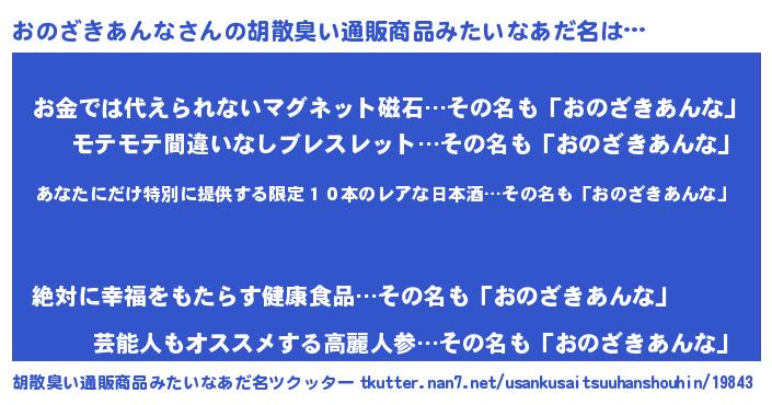 | 意味不明あだ名 | 『住所不定無職おのざきあんな(65歳)』 |