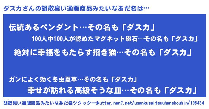 | ヘコむあだ名 | 『ダスカ(笑)』『ダスっちょ』 |