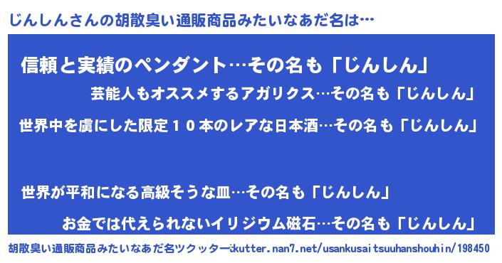 | 意味不明あだ名 | 『住所不定無職じんしん(14歳)』 |