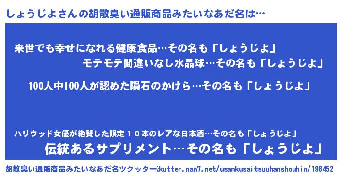 | ヘコむあだ名 | 『しょうじよ(苦笑)』『しょ太郎』 |
