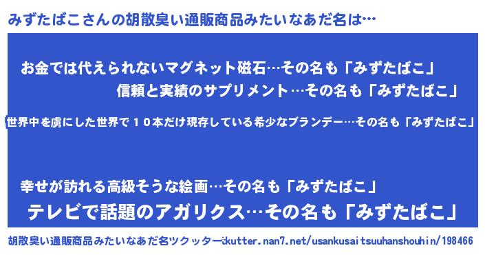 | 意味不明あだ名 | 『住所不定無職みずたばこ(95歳)』 |