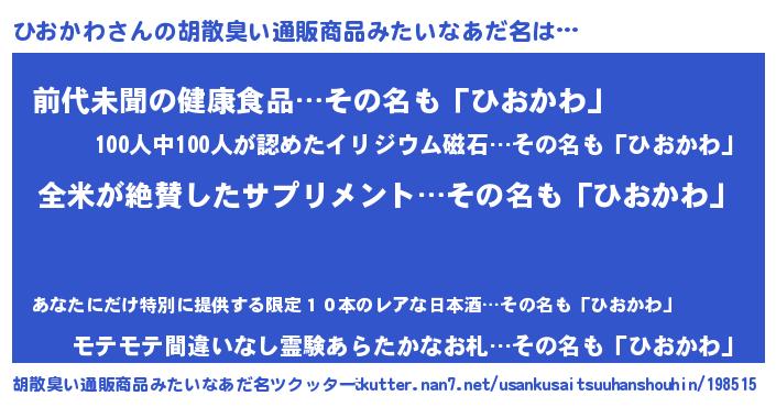 | 意味不明あだ名 | 『とにかく怪しいひおかわ』 |