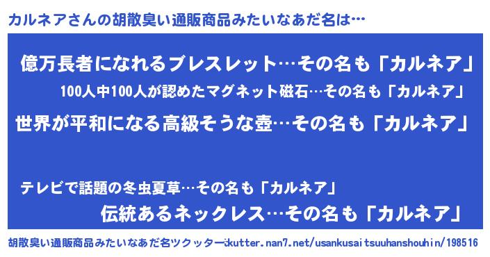 | ヘコむあだ名 | 『なまこ酢』『カルにー』『カルお』 |