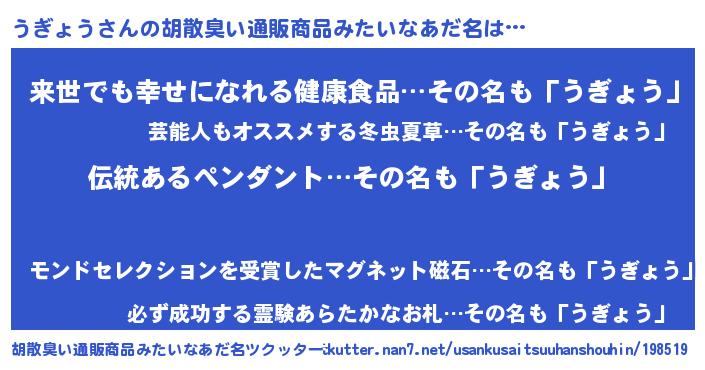 | 意味不明あだ名 | 『もやし科うぎょう属』『自称うぎょう』 |