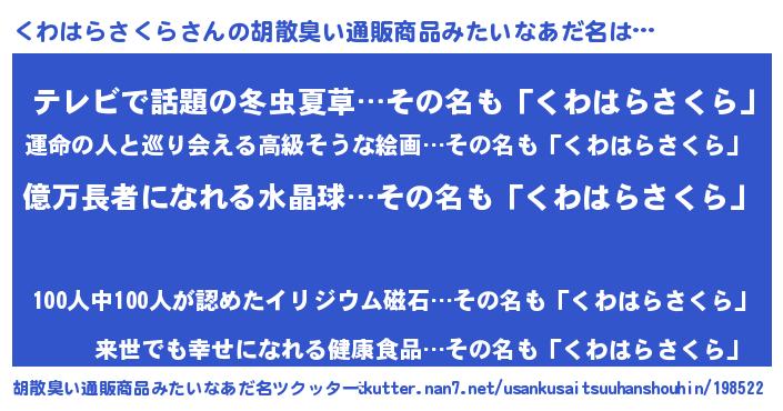 | ヒーロー風カッコイイあだ名 | 『スーパークワハラサクラ』 |