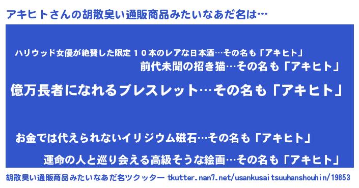 | ヒーロー風カッコイイあだ名 | 『スーパーアキヒト』『仮面アキダー』 |