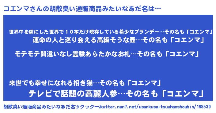 | 恥ずかしいあだ名 | 『プリティーコエンマ』『コエっちょ』 |