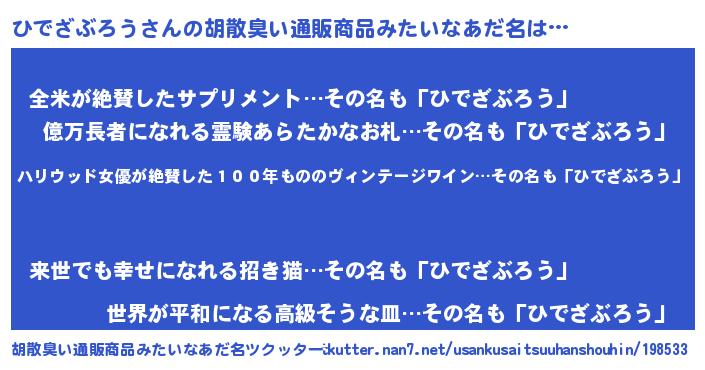 | 意味不明あだ名 | 『住所不定無職ひでざぶろう(6歳)』 |