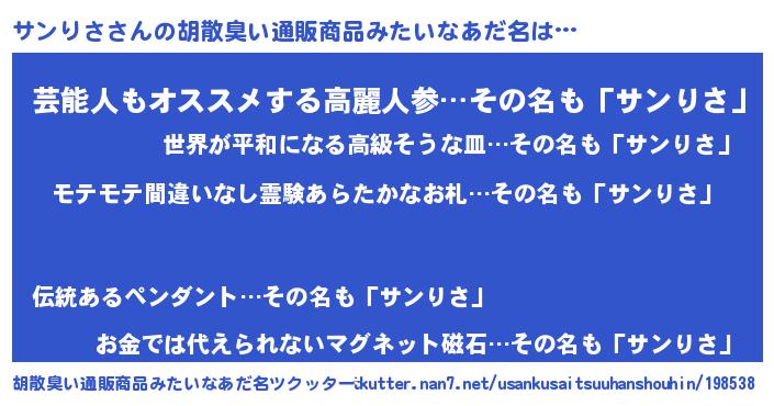 | ヘコむあだ名 | 『サンもー』『なまこ酢』『サンお』 |