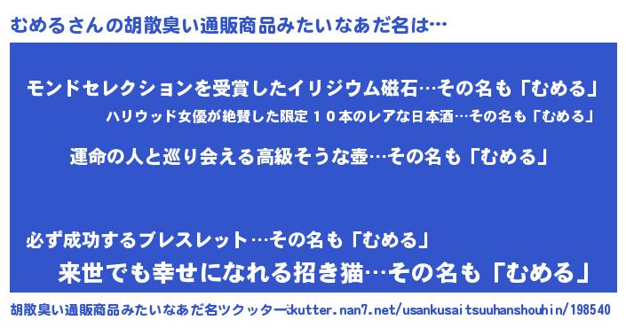 | 意味不明あだ名 | 『むめるフォーエバー』『永久保存むめる』 |