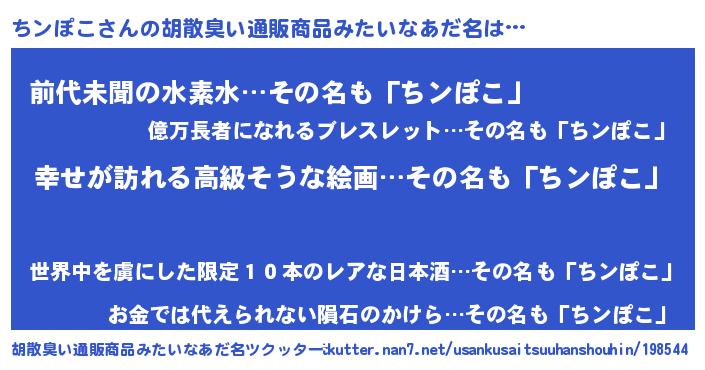 | ファンタジー風あだ名 | 『エターナルチンポコー』『クインチット』 |