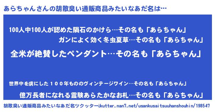 | 意味不明あだ名 | 『とにかく怪しいあらちゃん』 |