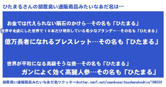 | ヒーロー風カッコイイあだ名 | 『スーパーヒタマル』『仮面ヒタダー』 |