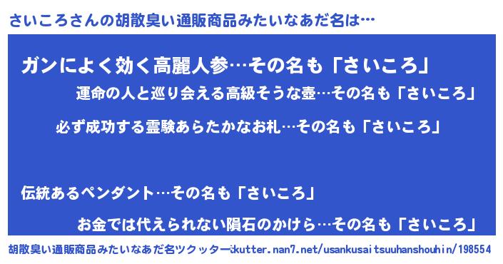 | 男性向けラノベタイトル風あだ名 | 『さいころの憂鬱』『サイコロスレイヤー』 |