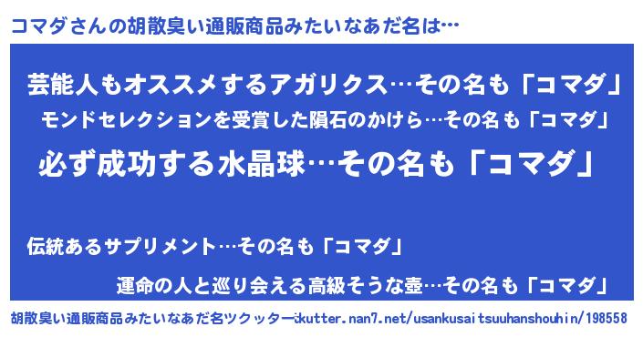 | ヒーロー風カッコイイあだ名 | 『スーパーコマダ』『究極戦士コマダ』 |