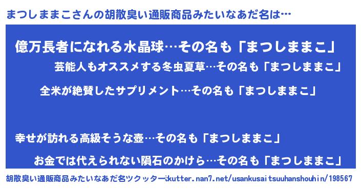 | 欧米人風あだ名 | 『アンジェラ・まつしままこ』 |