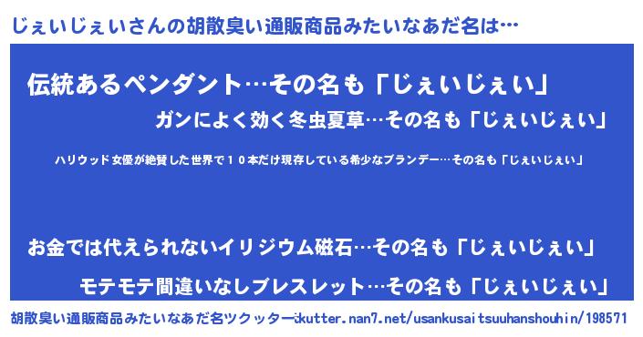 | ヘコむあだ名 | 『じぇっちょ』『じぇにー』 |
