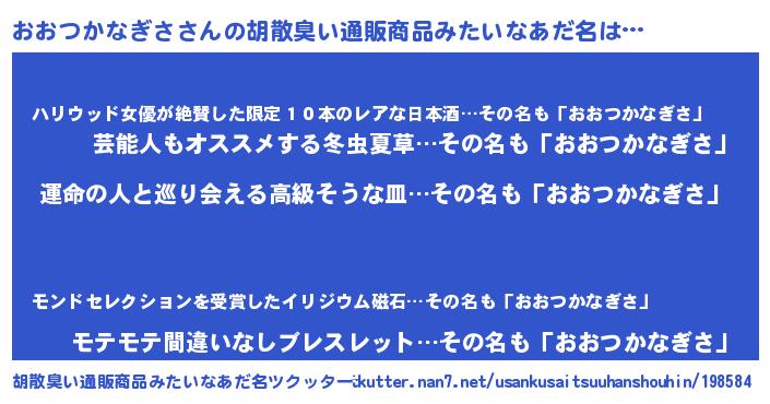 | 意味不明あだ名 | 『ヨモギ科おおつかなぎさ属』 |