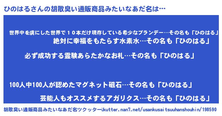 | ヘコむあだ名 | 『ひのもー』『ひのはる(震え声)』 |