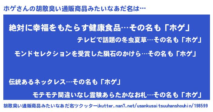 | ヒーロー風カッコイイあだ名 | 『天空の使者ホゲ』『ネオホゲ』 |