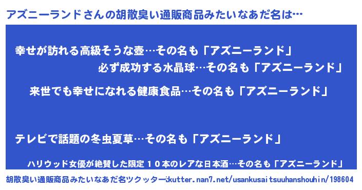 | 意味不明あだ名 | 『永久保存アズニーランド』 |