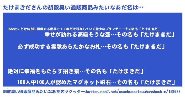 | 伝説のあだ名 | 『伝説のスナイパーたけまきだ』 |